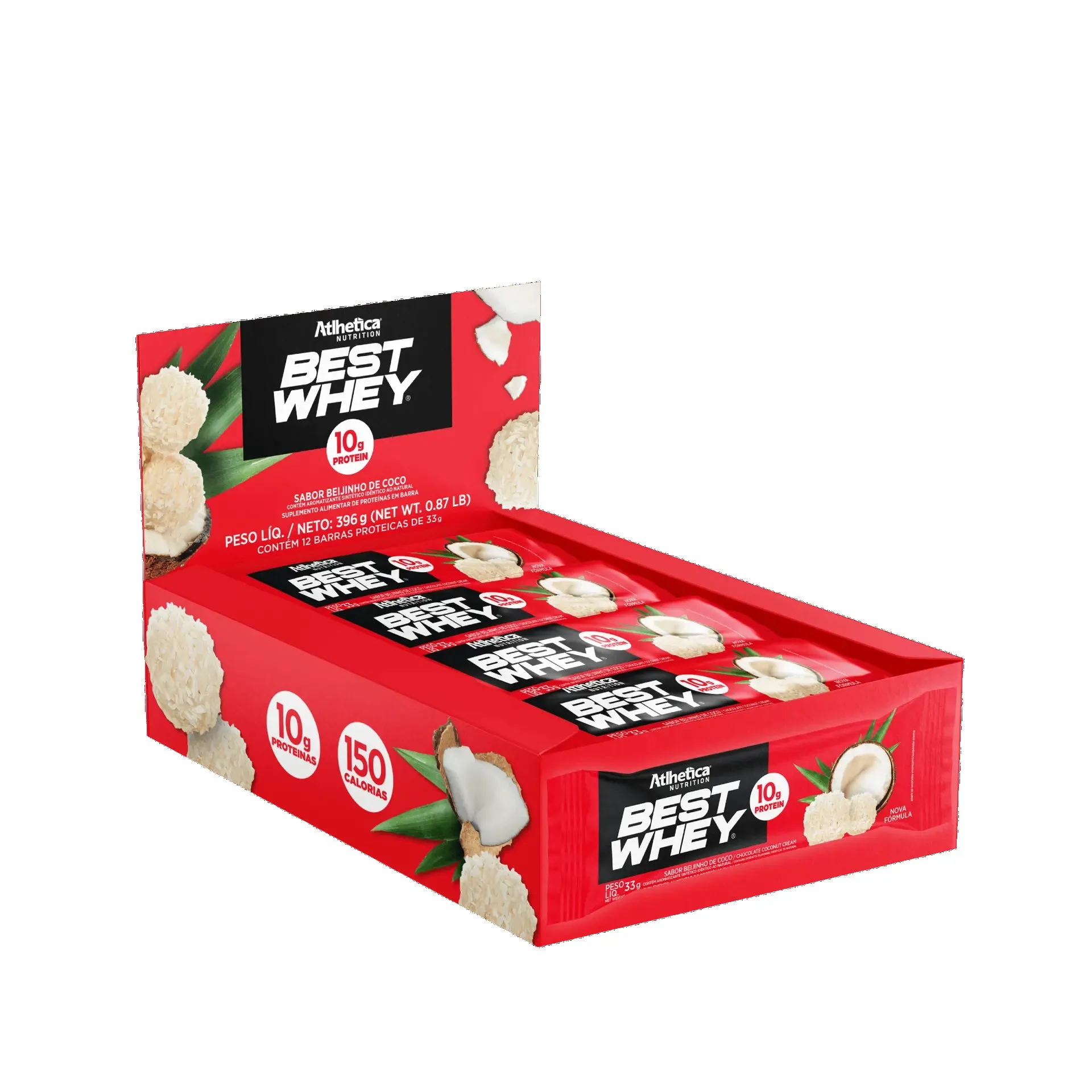 A Best Whey Bar 10g da Atlhetica Nutrition é uma barra leve e saborosa com 10g de proteína por unidade. Ideal para complementar sua dieta de forma prática e gostosa, sem adição de açúcar e sem glúten.Feita com o blend proteico Best Whey (whey concentrado, isolado e hidrolisado), é enriquecida com fibras e coberta com um toque doce e cremoso.
