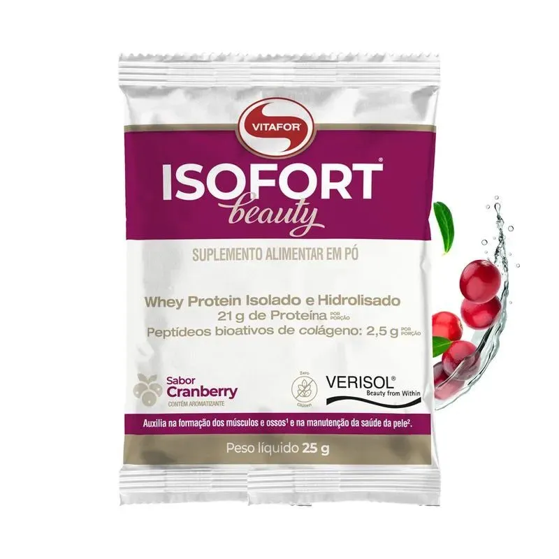 ISOFORT® BEAUTY é um suplemento alimentar composto de proteínas de alto valor biológico e possui aminoácidos dentre eles os BCAAs, L-glutamina, L-arginina e L-prolina, além de conter peptídeos de proteínas como: glicomacropeptídeos (GMPs), alfa-lactoalbumina, imunoglobulinas e lactoferrina. Os peptídeos bioativos de colágeno hidrolisado com peso molecular médio de 2kDa auxiliam na manutenção da saúde da pele.