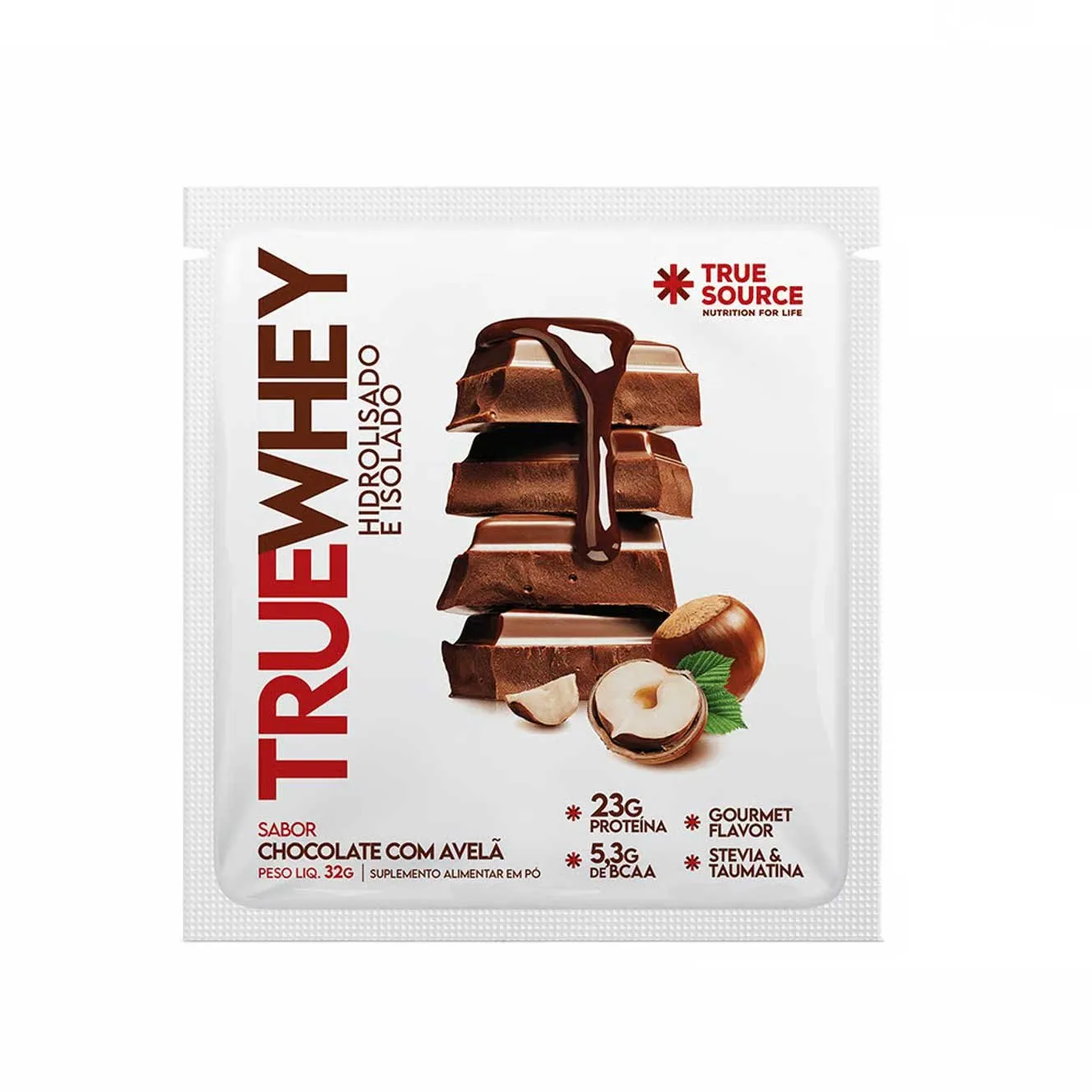 Proteína - True Whey Protein - Sachê 32g - True Source Nosso True Whey tem um blend especial das mais puras filtrações, a hidrolisada e isolada. Lhe oferecemos 23 gramas de proteína e 5,3 gramas de BCAAs na dose, além de 2,5 gramas de Verisol®. Nosso whey é para quem busca o melhor! O melhor resultado e com melhor produto. Nosso whey tem 5,3 gramas de BCAAs, que são os aminoácidos de cadeia ramificada, muito importantes para a manutenção da massa magra, evitando o catabolismo e a fadiga muscular, porque sabemos que ninguém merece ficar com aquela sensação de cansaço excessivo após um treino mais intenso.